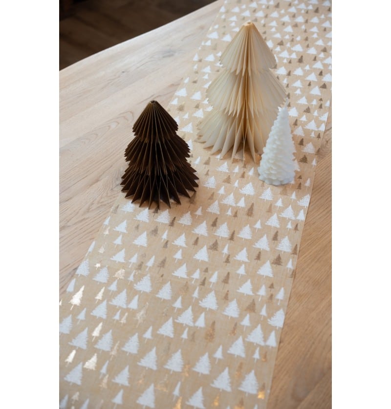 Juletræ Bordløber Hvid/Guld – Bordløber