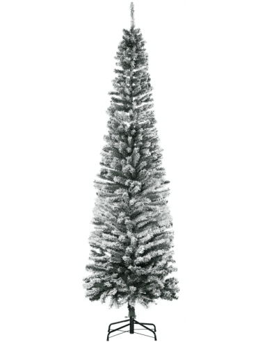 Kunstigt juletræ med naturtro grene med sne. Træet måler cirka 225 cm i højden og 68 cm i diameter og kommer med fod.